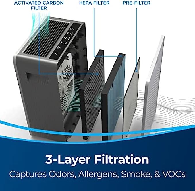 Bissell air400 Professional Air Purifier with HEPA and Carbon Filters for Large Room and Home, Quiet Bedroom Air Cleaner for Allergies, Pets, Dust, Dander, Pollen, Smoke, Hair, Odors, Smart